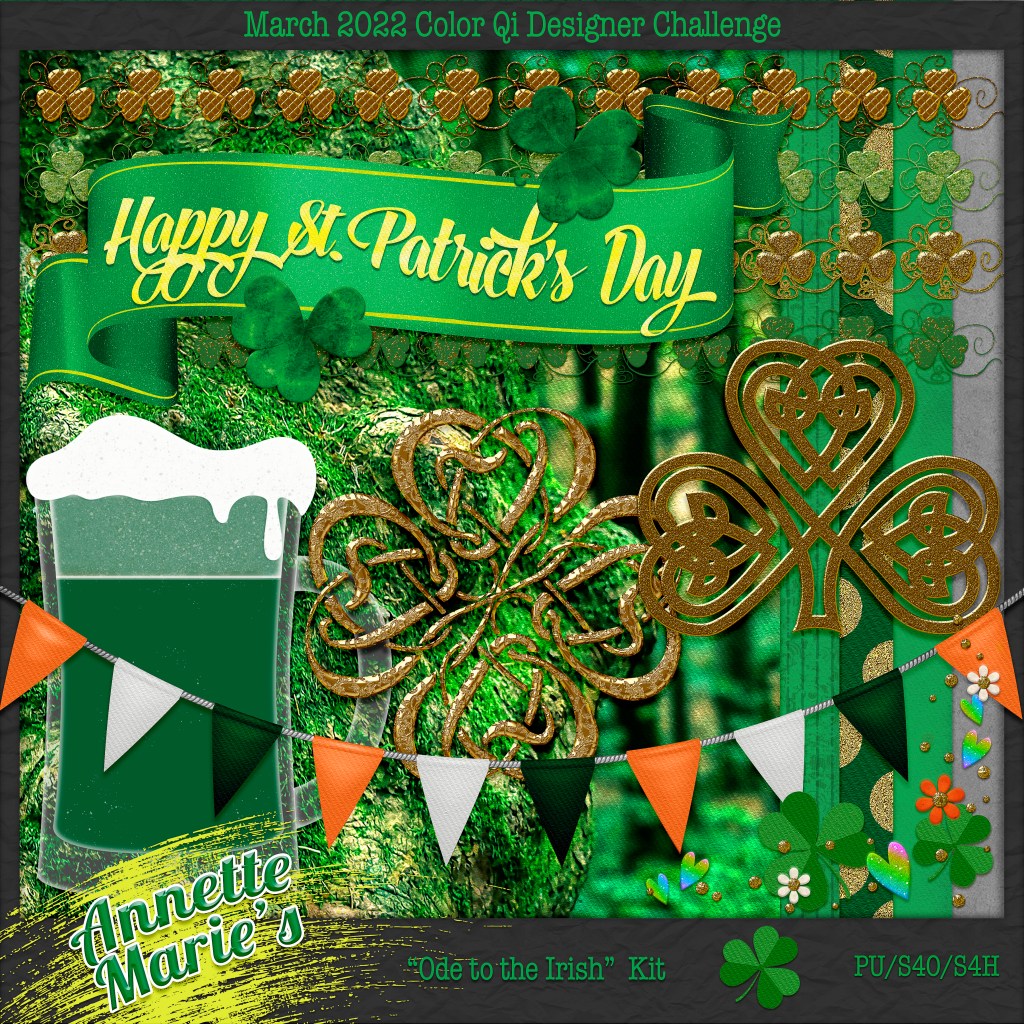 St. Patrick’s Day is gonna be here before you know it, so I thought it was time to share this kit that might help you scrap your “Wearing of the Green” adventures this year. This was made in response to the Digital Scrapbook.com March 2022 Color Qi Designer Challenge and I had the best time playing around with the color “Irish Green.” (So much fun that I couldn’t stop playing even after the preview image was done, so there are some “surprise” plaid papers included in the zip.)